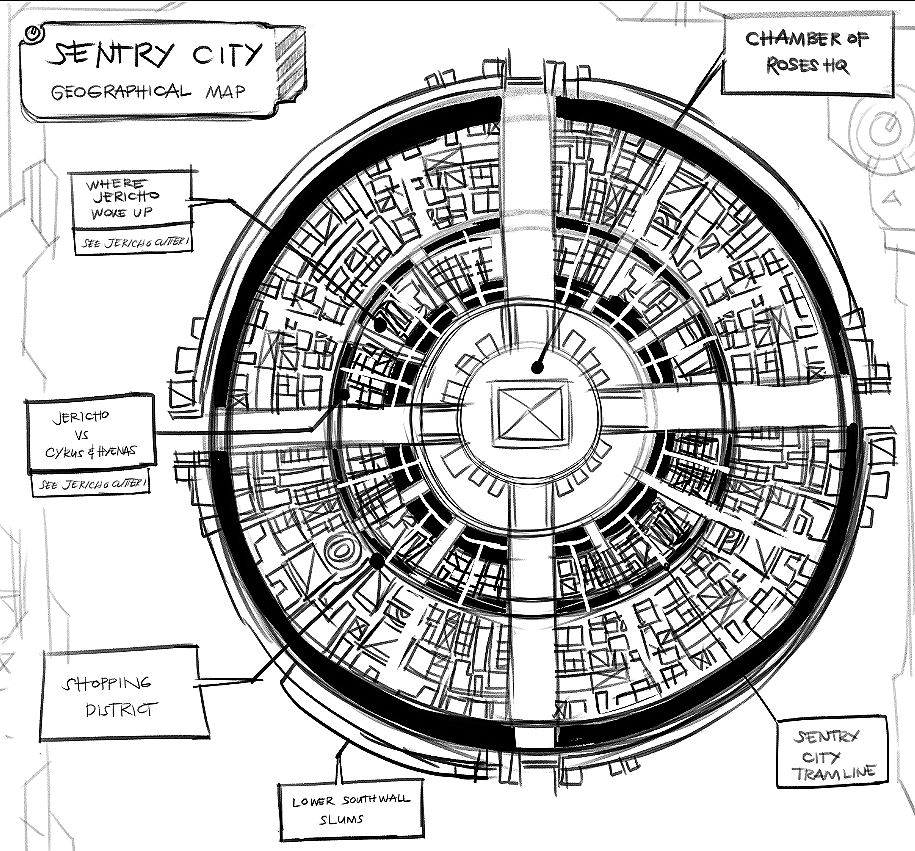 Sentry City Geographical Map from Jericho Cutter #2 | Sketches by Tonio Maicon